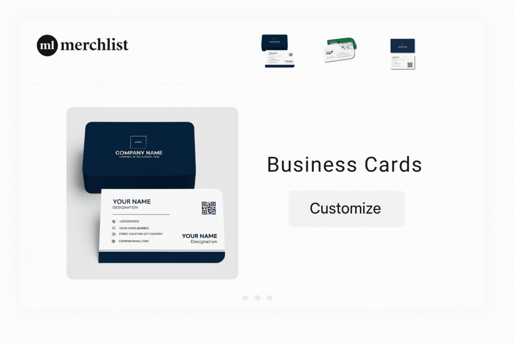With Merchlist, designing custom business cards is quick, professional, and effortless. Whether you’re an entrepreneur, freelancer, corporate professional, or event organizer. Choose from a variety of paper stocks, finishes, and styles, and personalize them with your logo, details, or artwork for a sleek, memorable look.
