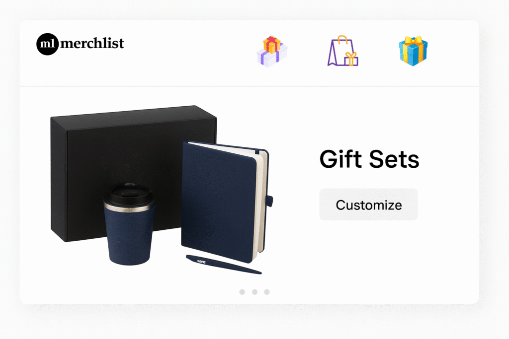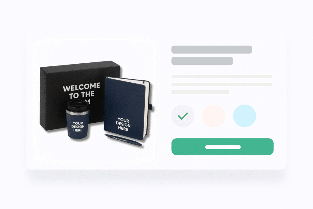 Pick your products, upload your logo or message, and preview your gift set before finalizing your order.