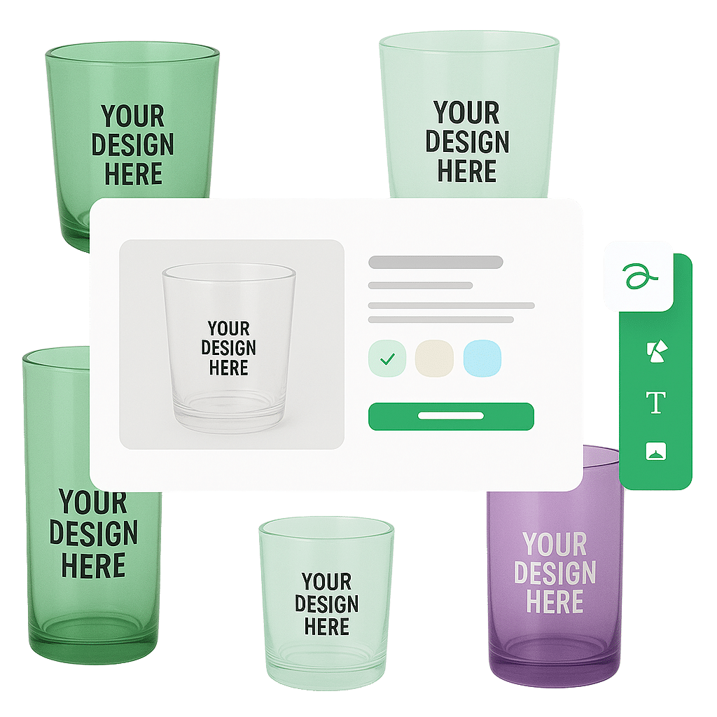 You’ve got the idea, we’ve got the tools. Design your custom glassware online using our free design assets and easy editing tools: