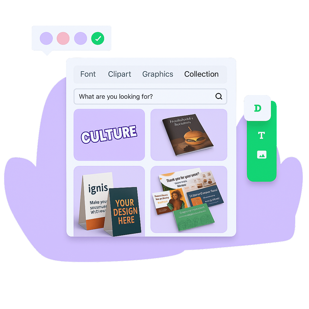 You can customize flyers, brochures, business cards, posters, catalogs, banners, and more.