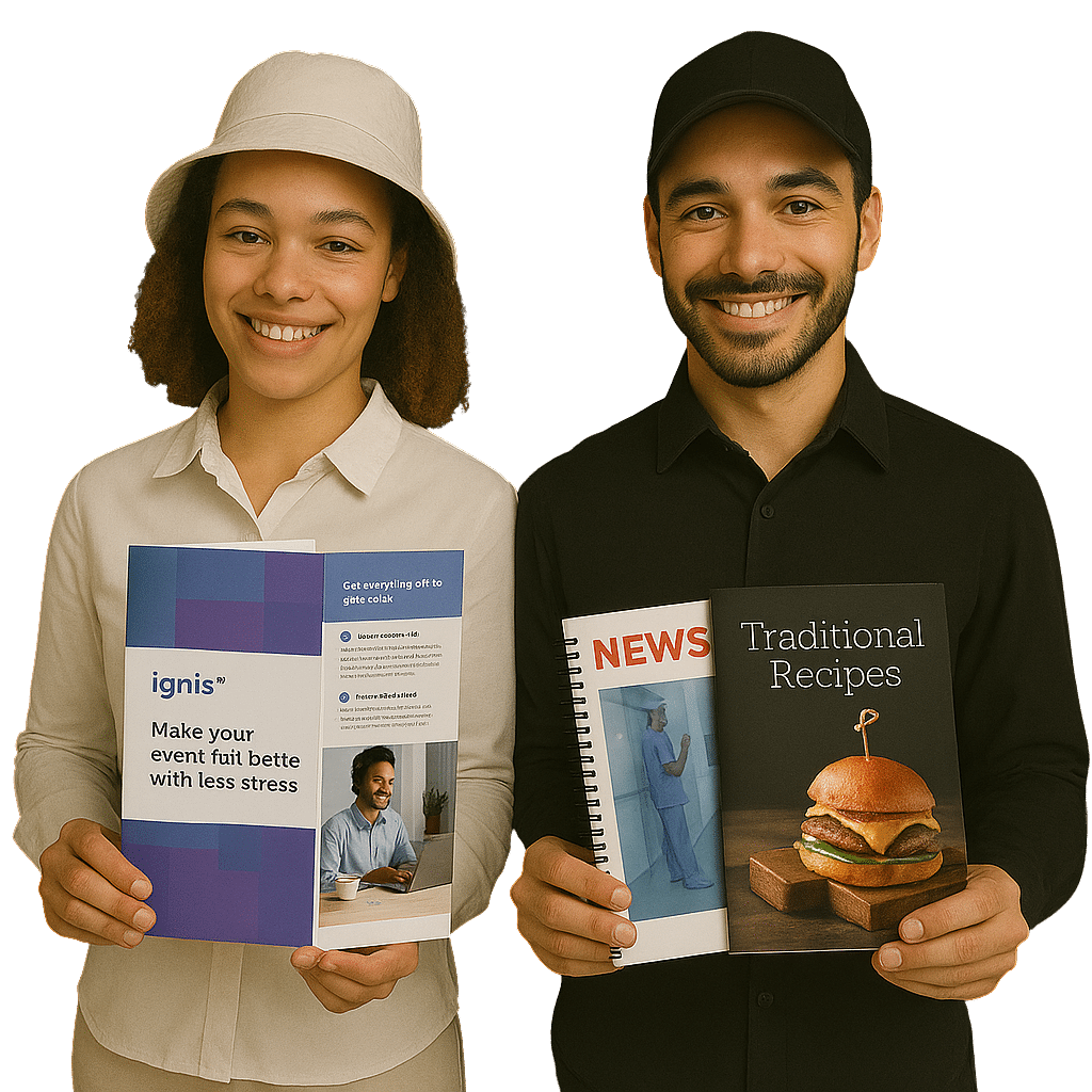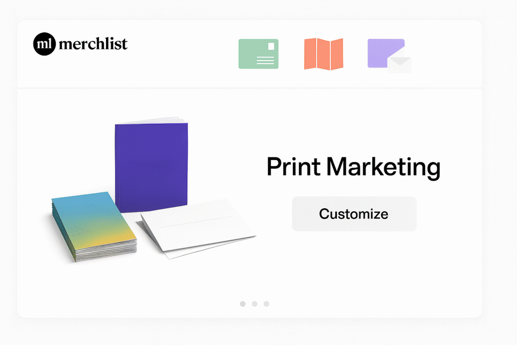 Explore our full range of custom print marketing materials — from flyers and brochures to business cards, catalogs, and roll-up banners. Choose the size, paper type, and finish that best fits your campaign or brand aesthetic.