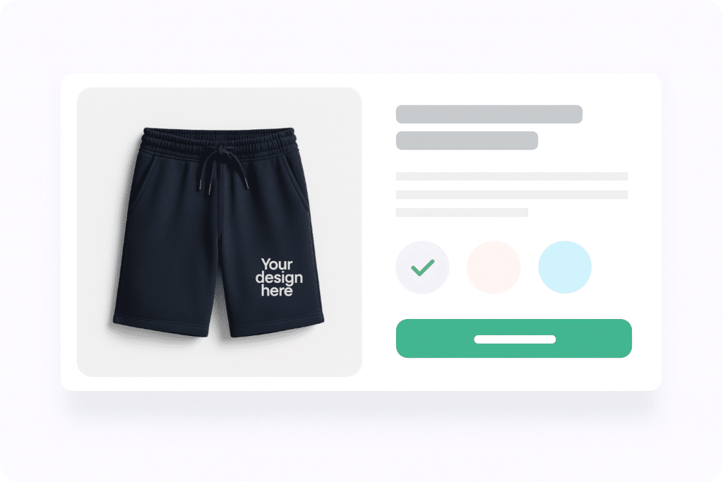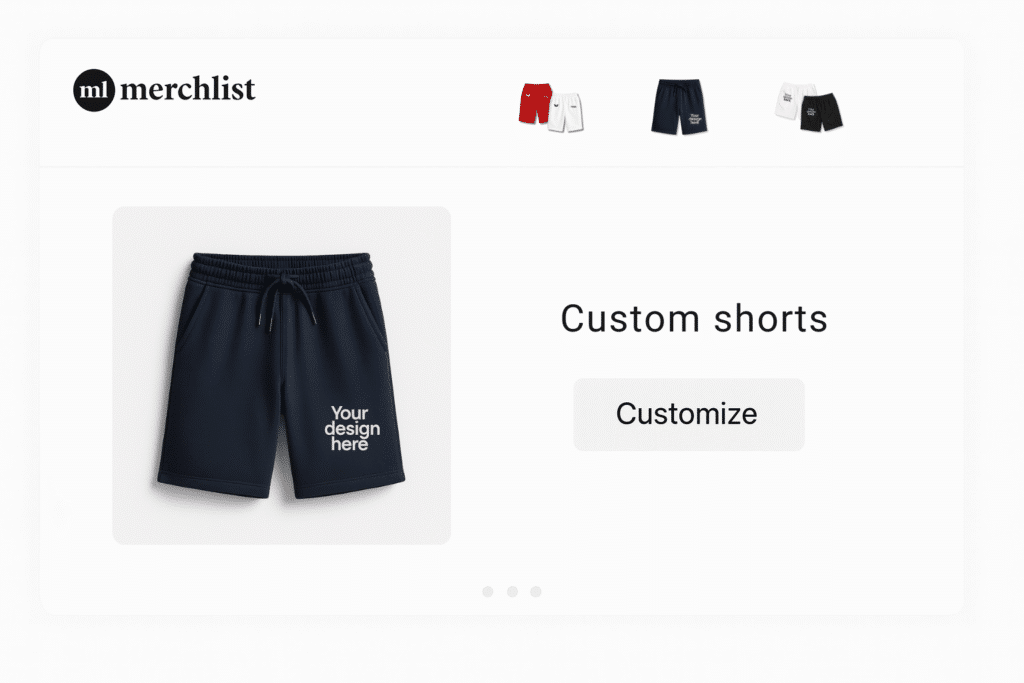 Log in to your Merchlist account, select your shorts style, upload your design or logo, and preview your product before checkout.