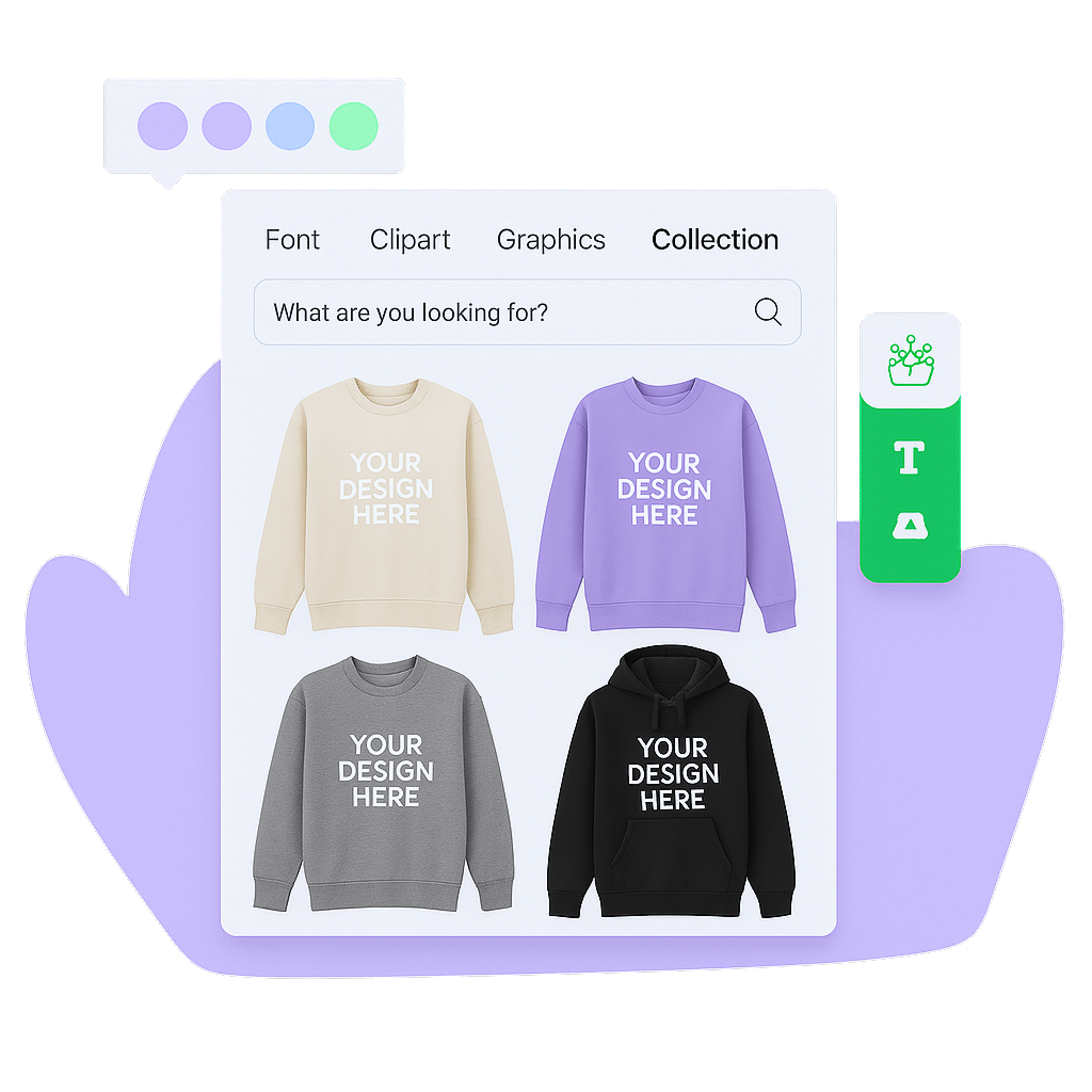 Upload your logo or design, choose your sweater type, and preview your product before finalizing your order.