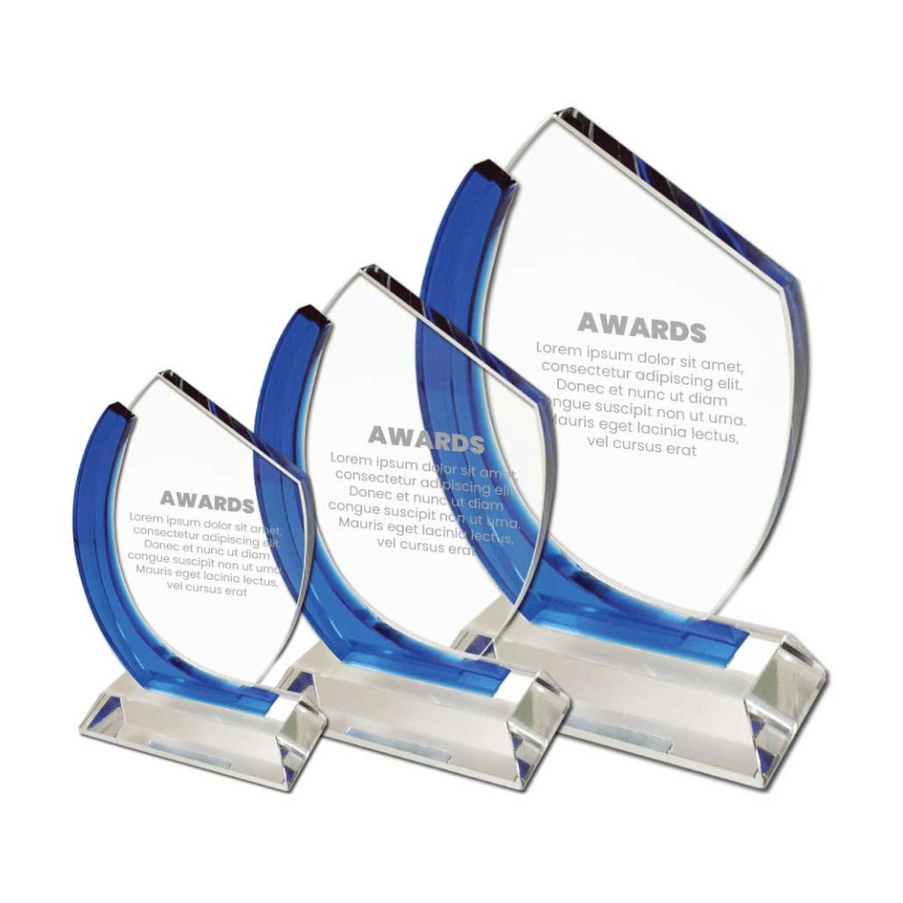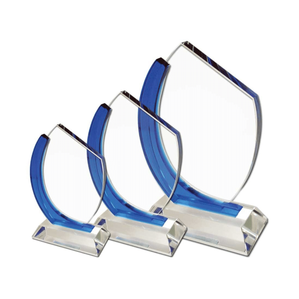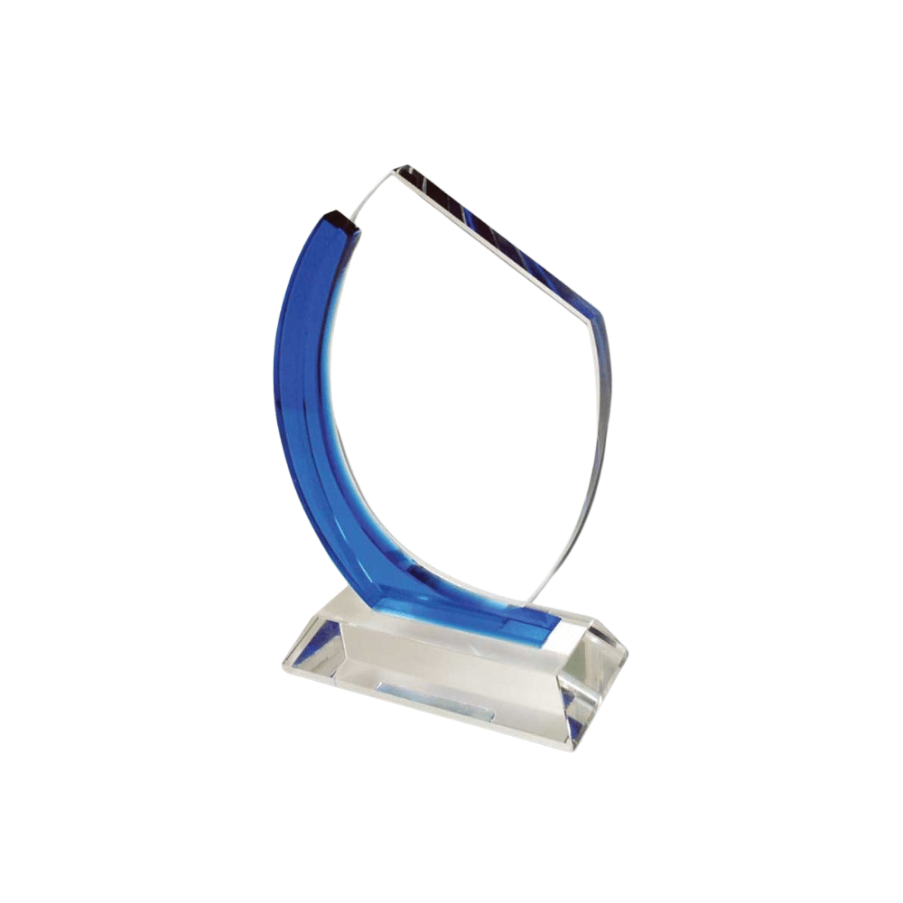 This classy award is a true work of art. It features a transparent crystal base and a striking blue swish effect on one side. The vibrant blue color beautifully complements the sleek silhouette. It perfectly balances strength and grace to create a memorable presentation.
