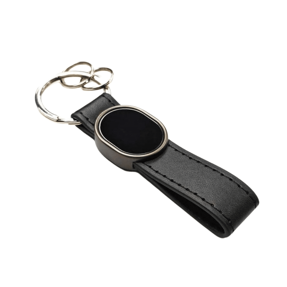 Premium Construction: Crafted from high-quality PU leather paired with a durable metal ring for strength and sophistication within your custom merchandise collection.