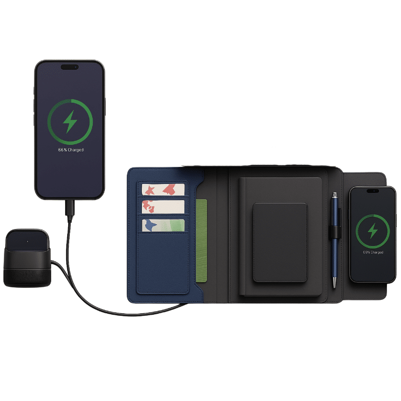 Each Bergmund Powerbank Portfolio can be custom printed or embossed with your company logo, design, or personalized branding. This transforms it into a high-impact corporate gifting solution that aligns your brand with innovation and sustainability. Elegantly presented in a premium gift box, this product delivers both utility and sophistication. It is perfect for executives, clients, and team members alike.