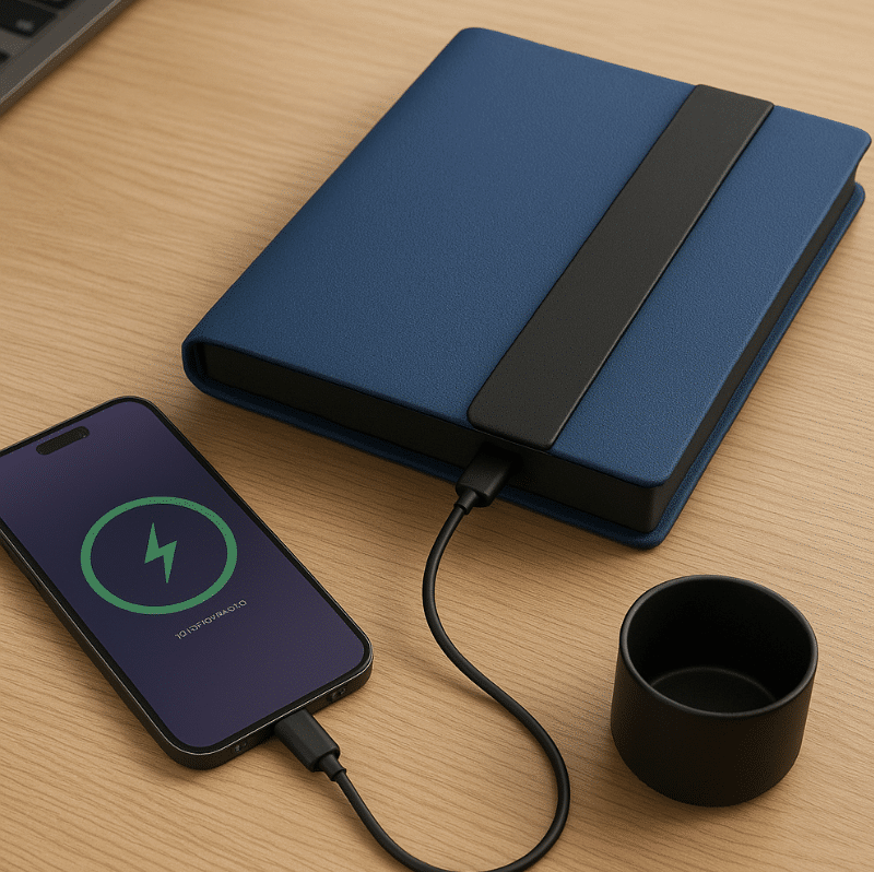 The Custom Printed Bergmund 10K Powerbank Portfolio by Merchlist is a cutting-edge blend of technology, style, and sustainability. It is designed for modern professionals who value efficiency and sophistication. This premium custom branded corporate gift combines the practicality of a notebook with the convenience of a Custom Bergmund 10K Powerbank Portfolio. This makes it an ideal accessory for meetings. It is also useful for business travel and everyday productivity.