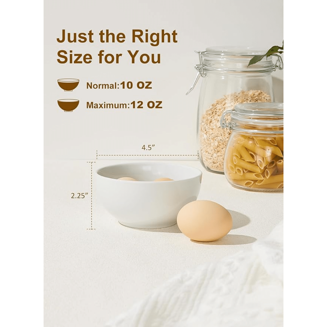 Perfect Size: 10 oz capacity (maximum 12 oz), measuring 4.5” in diameter and 2.25” in height, ideal for portion control or serving small dishes.