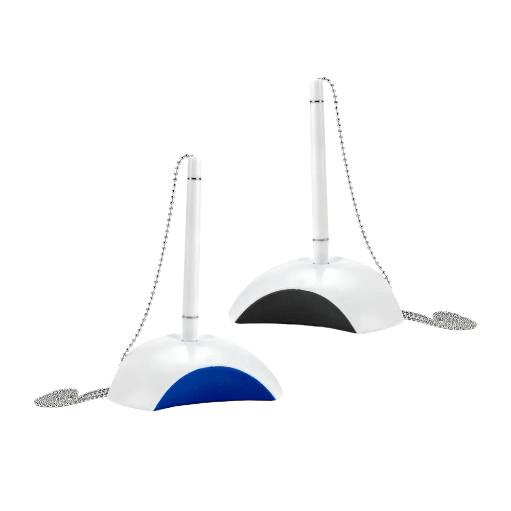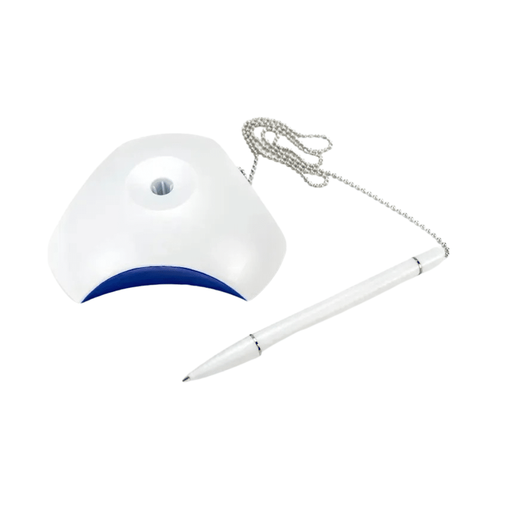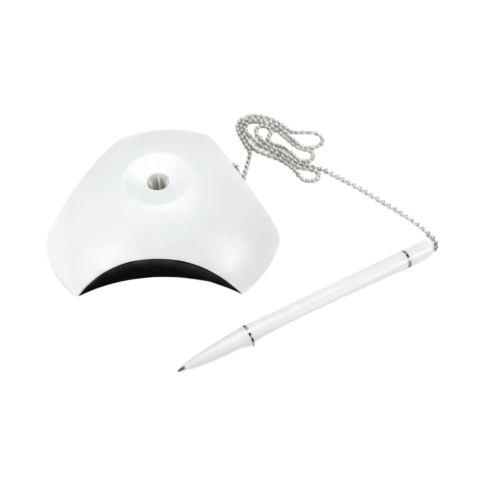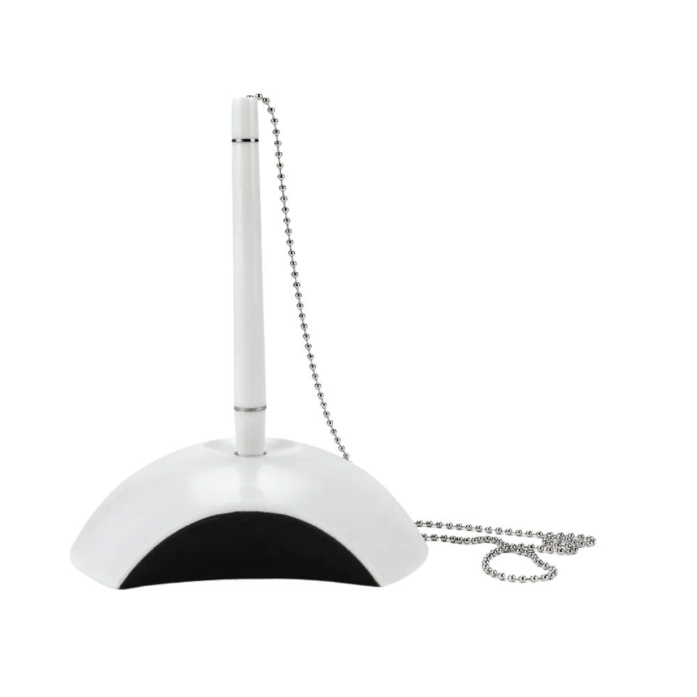 Ensure ultimate convenience at your service desk with the Custom Branded Counter Pen by Merchlist. This practical desk pen features a sturdy base holder and a secured long silver chain. Specifically, the 56 cm chain keeps the pen safely attached to your counter. Therefore, you never have to worry about lost pens during busy work shifts.