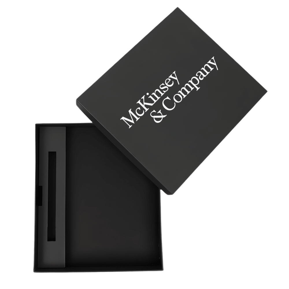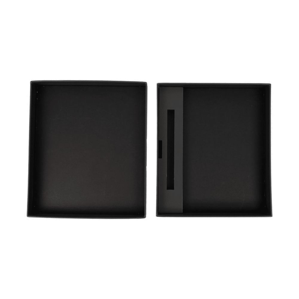 Its understated black finish complements a wide range of branding styles, from bold and modern to classic and understated. The box is ideal for pairing with premium notebooks and metal pens. As a result, it instantly upgrades them into a complete, gift-ready set suitable for professional environments.