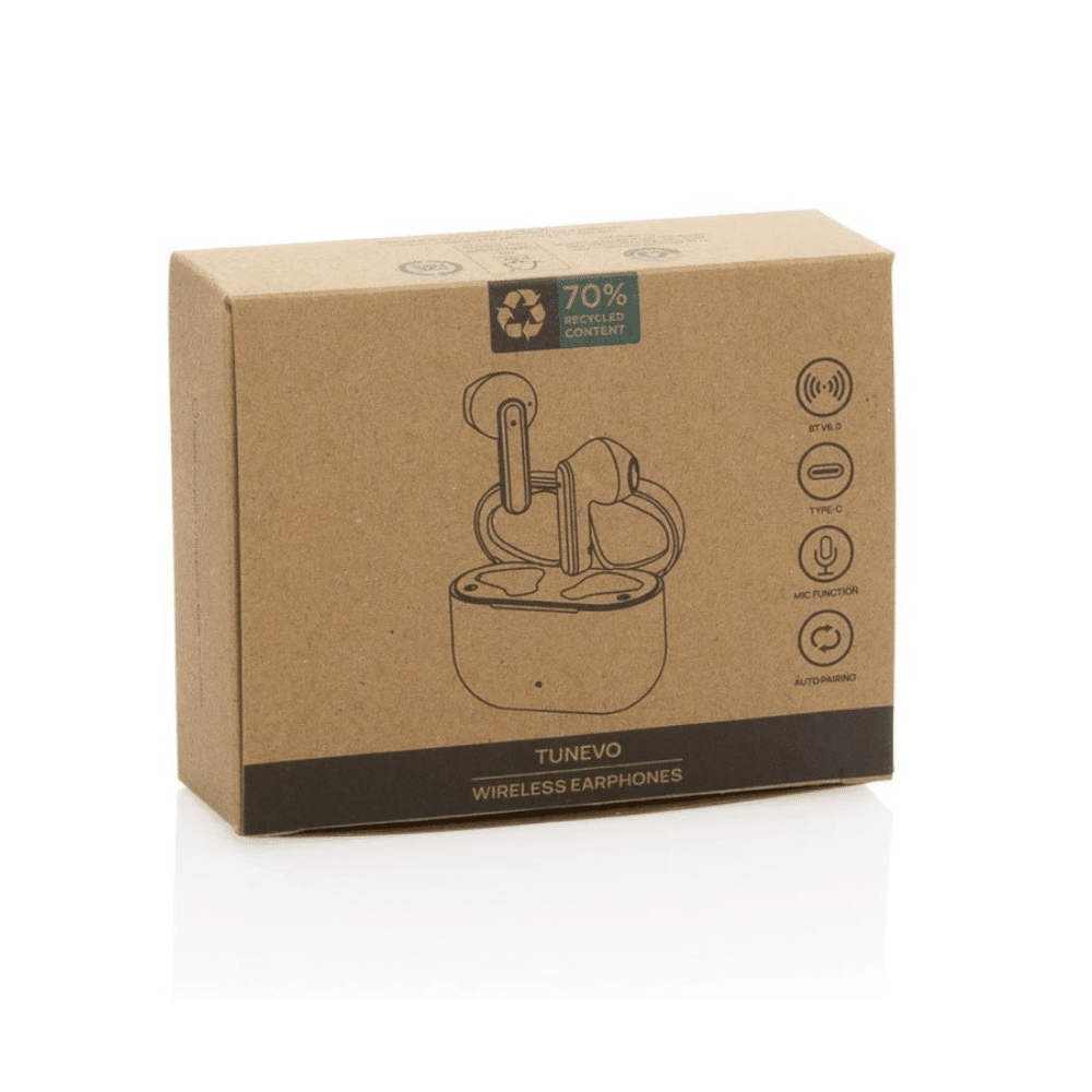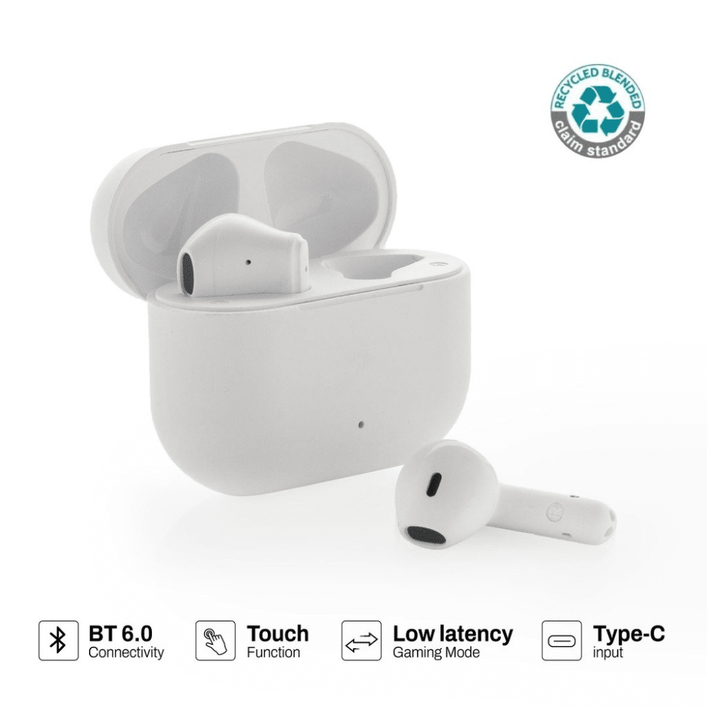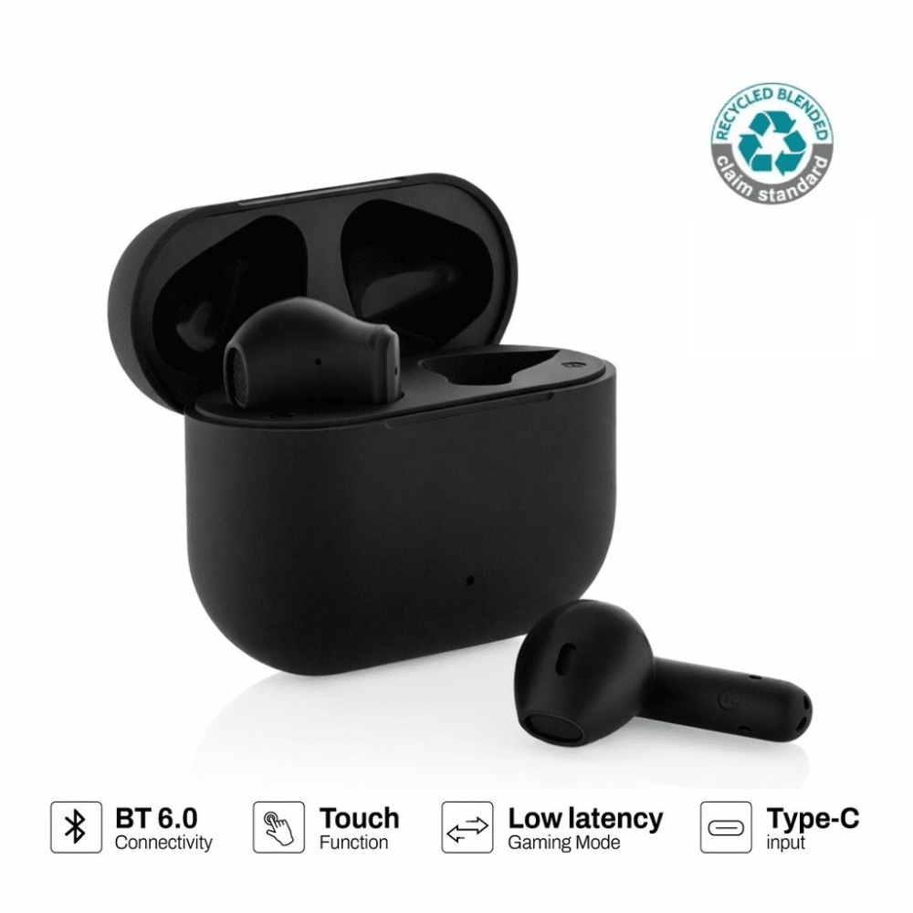 These modern earbuds serve as a fantastic canvas for your unique brand. You can easily add your custom printed design or company logo to the sleek charging case. Furthermore, they are made from 70% RCS-certified recycled ABS plastic. This verified, PVC-free build makes them a truly green choice for eco-conscious buyers.