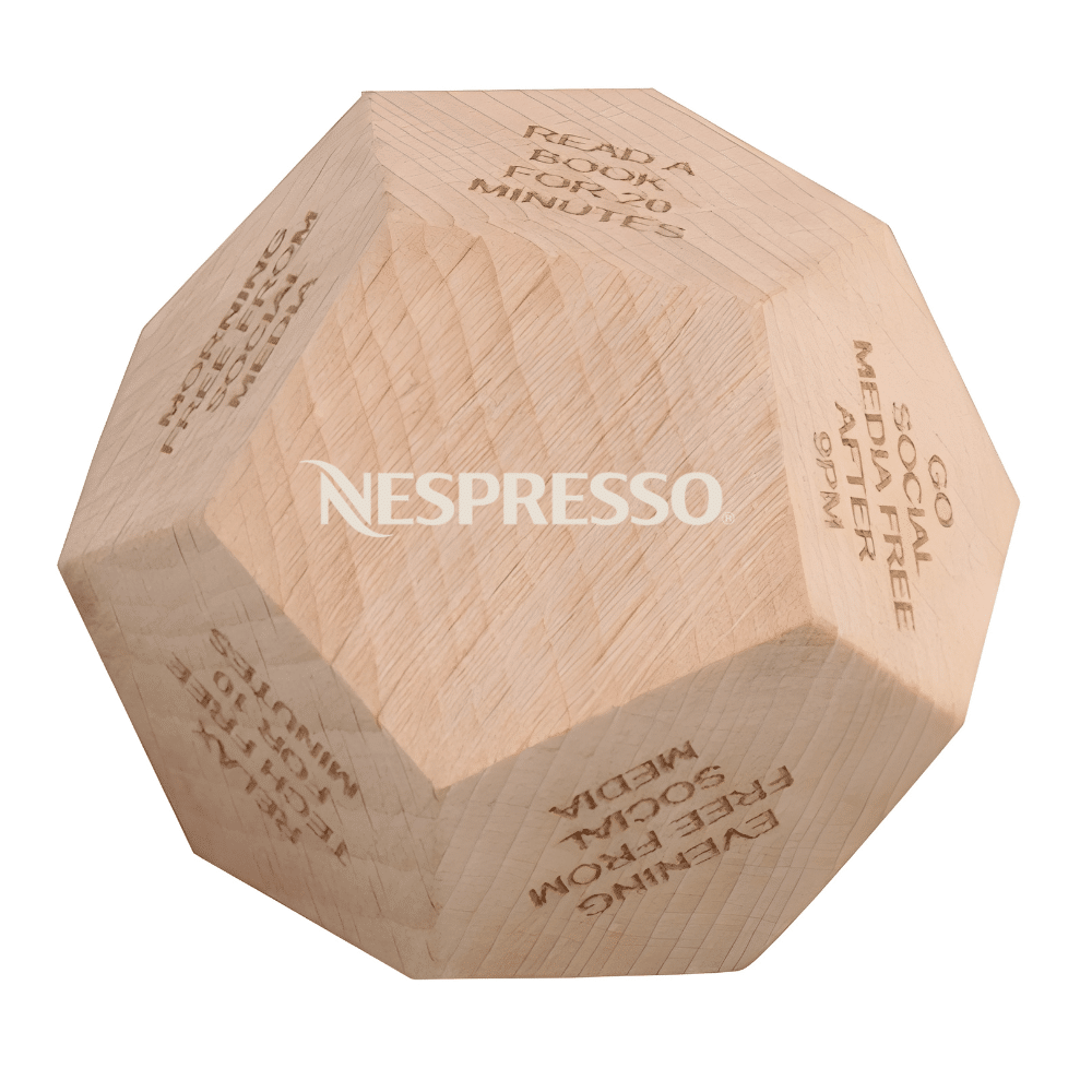 The Custom Branded ORLI Digital Detox Wooden Dice by Merchlist is more than just a desk accessory. It’s a daily mindfulness tool designed to encourage healthier habits in an age of constant connectivity. Crafted from premium wood and customizable with your design, company logo, or personalized branding, this thoughtful product promotes unplugging from screens. It refocuses on what matters most.