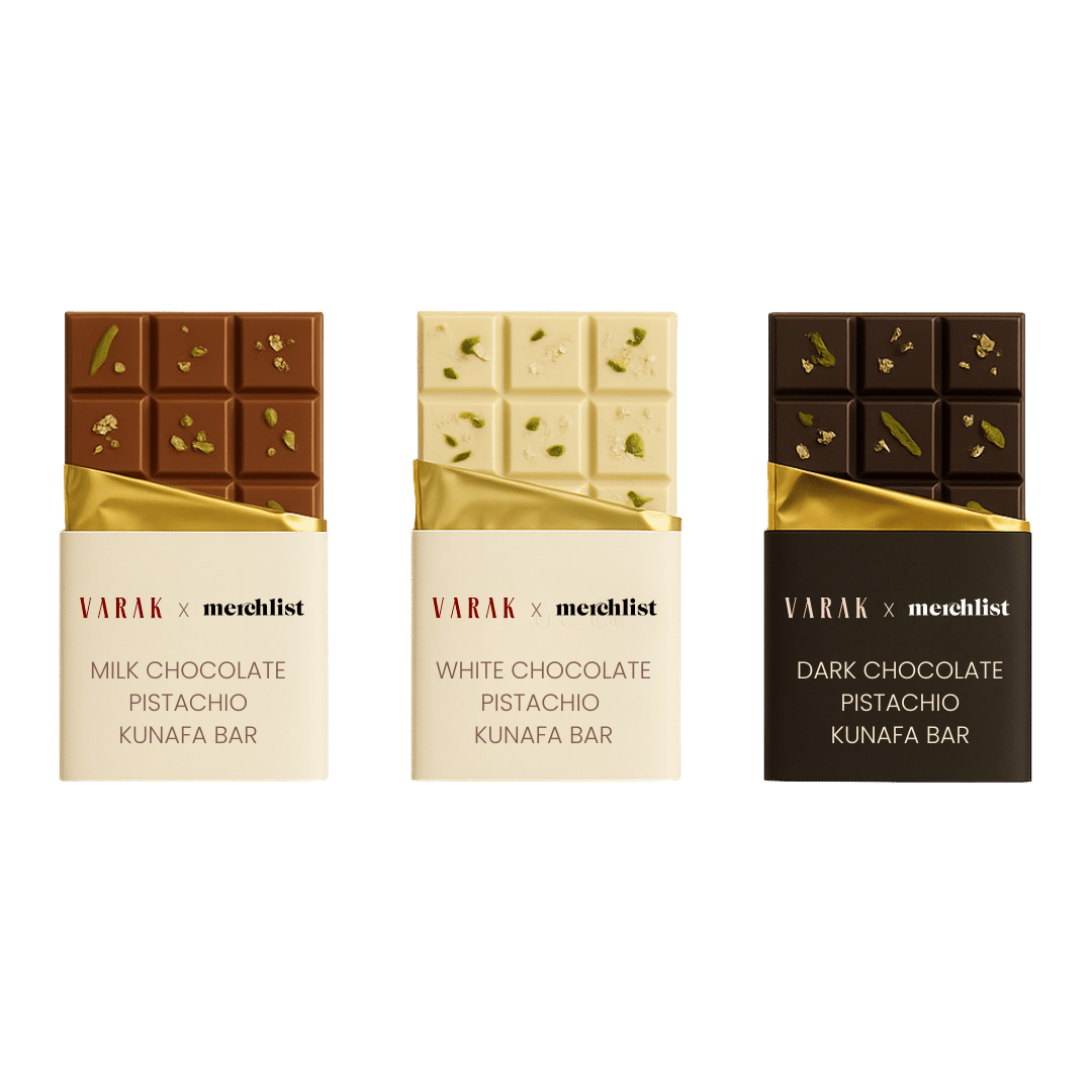 Indulge in the exquisite flavors of the Custom Branded Pistachio Knafeh Chocolate Bar, a luxurious treat that combines the creamy richness of pistachio knafeh with the irresistible crunch of premium chocolate. This viral chocolate sensation is crafted through an exclusive partnership between Dubai’s renowned edible luxury store, and Merchlist, ensuring every bar is a masterpiece of flavor and design.