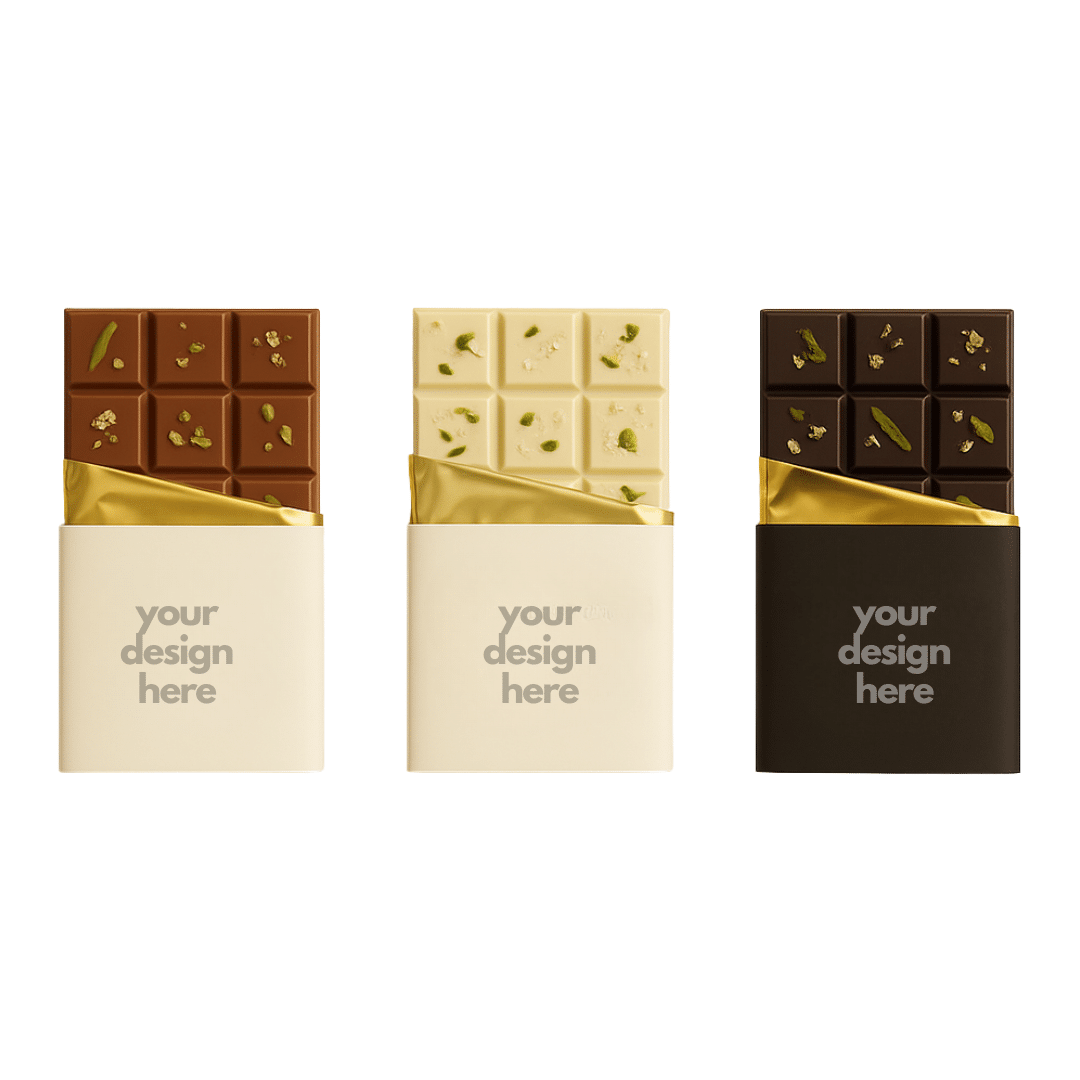 Each bar is elegantly wrapped in customizable packaging that reflects your brand’s identity, ensuring it’s as visually appealing as it is delicious. The luxurious design makes it an ideal choice for businesses and individuals aiming to make a memorable impression.