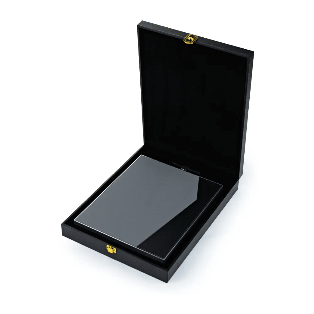 To further elevate its premium appeal, each award is presented in a luxury vertical-opening black fibreboard box with a gold lock closure. This ensures an impressive unboxing experience. It highlights its prestige.