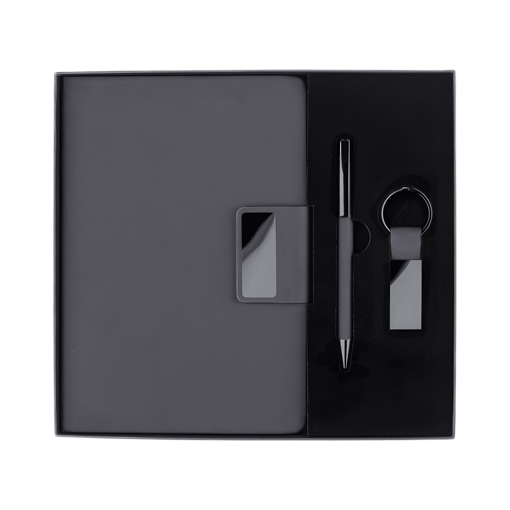 The Custom REGENT On-Boarding Set by Merchlist is a premium welcome gift designed to create a polished and professional first impression. Thoughtfully curated, this elegant gift set includes a stylish hardcover journal, a sleek metal pen, and a matching keychain. All items are coordinated in the same colour palette. Therefore, the set delivers a refined, executive look.