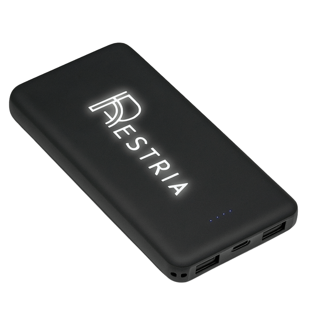 The Custom Branded Spectra 10K Light Up Powerbank by Merchlist is where innovation meets elegance. It is a premium custom printed corporate tech gift designed to keep devices charged. While doing so, it puts your brand in the spotlight. With its sleek matte finish and illuminated logo display, this powerbank transforms a daily necessity into a stylish branding opportunity.