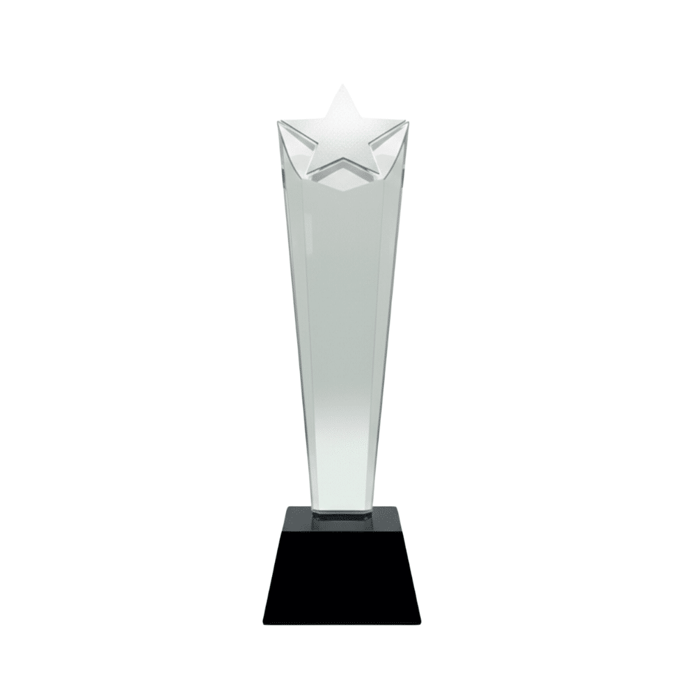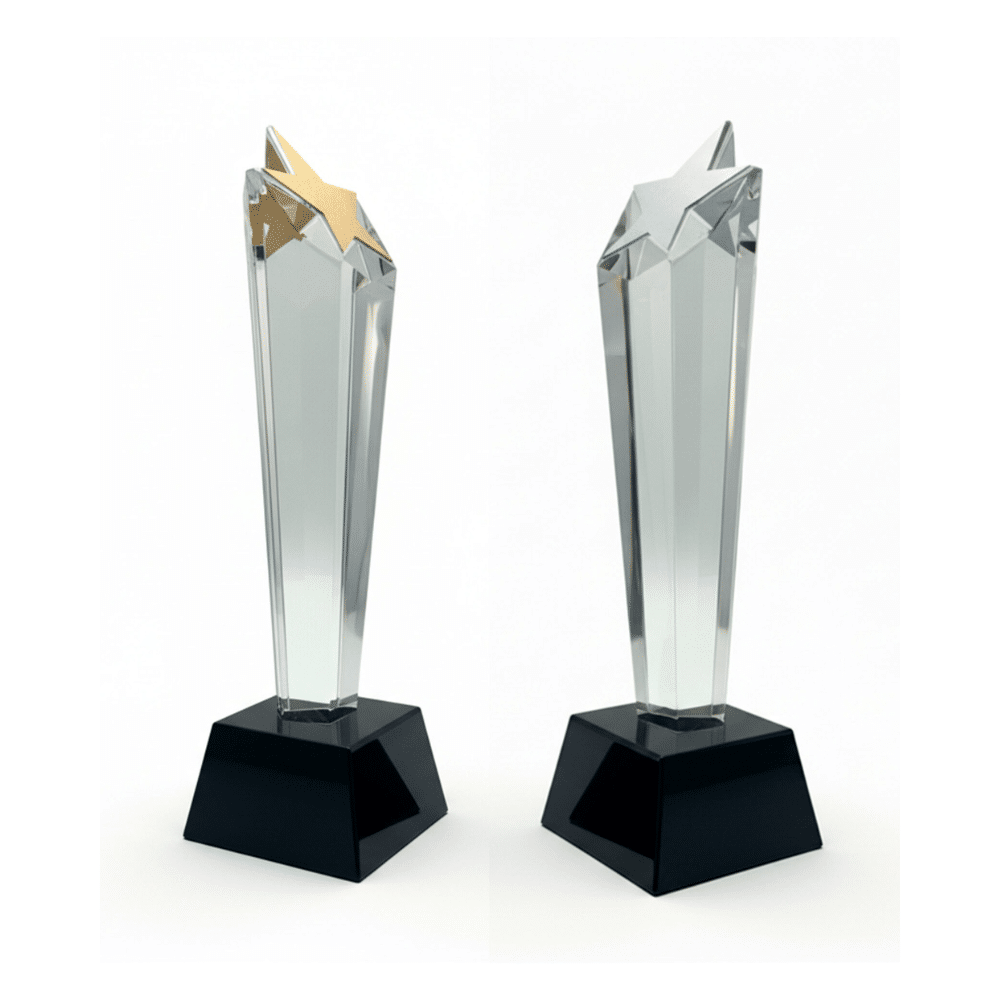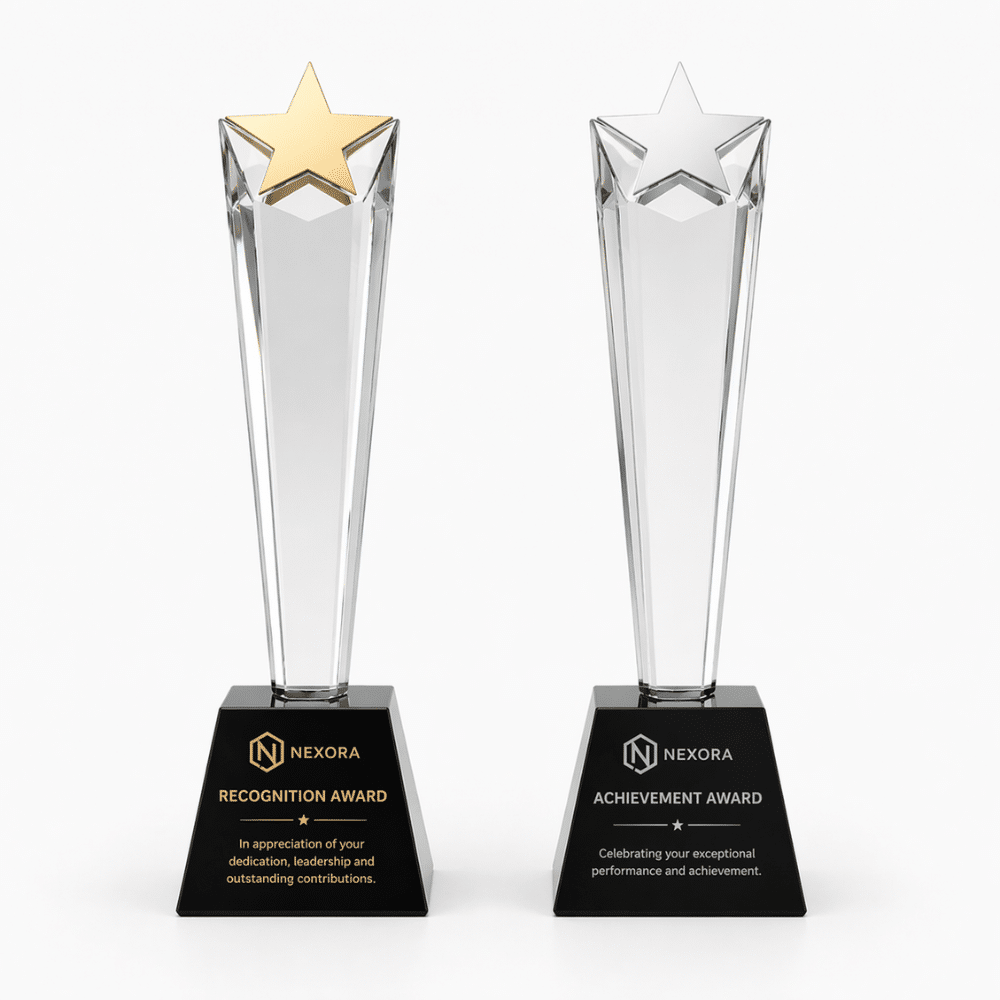 Merchlist provides premium custom awards that help your brand celebrate success perfectly every single time. We know that high-quality, reliable trophies matter immensely for your corporate recognition and employee retention strategy. Therefore, our STELLAR Crystal Trophy blends heavy-duty crystal with highly elegant metal accents.