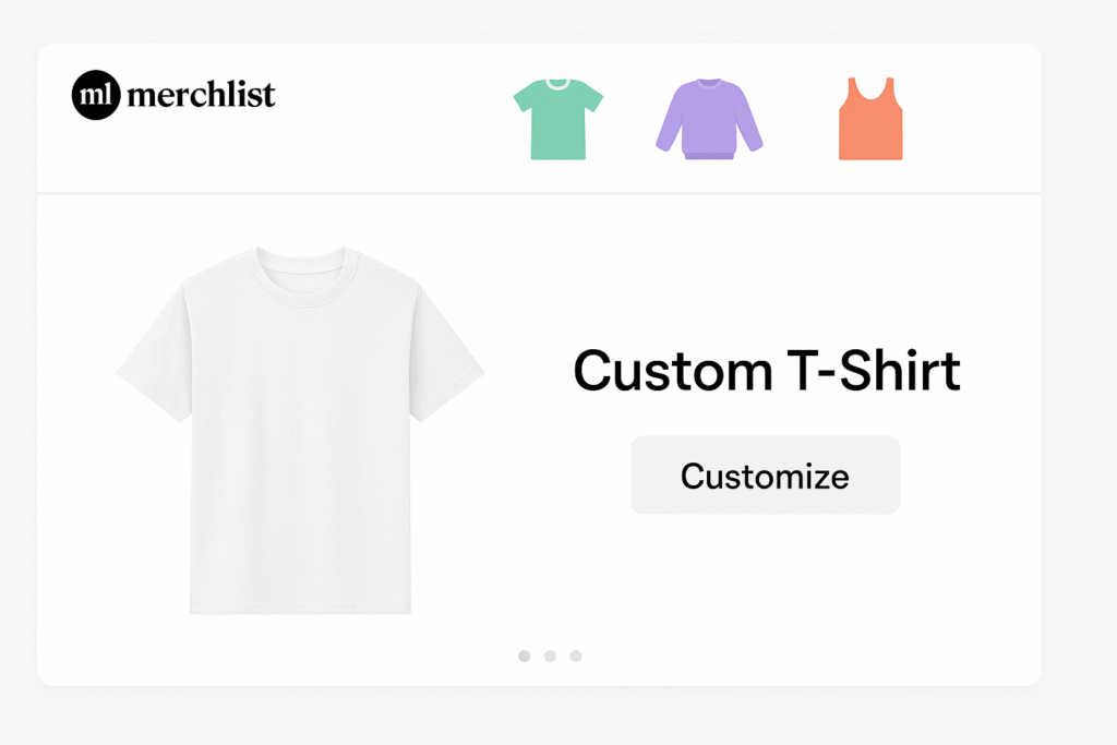 Start by signing in to your Merchlist account. Once you’re in, select your preferred custom t-shirt style and upload your logo, name, or artwork. You can choose from short sleeve t-shirts, long sleeve t-shirts, oversized tees, or hoodies, and create a design that reflects your brand or personal style.