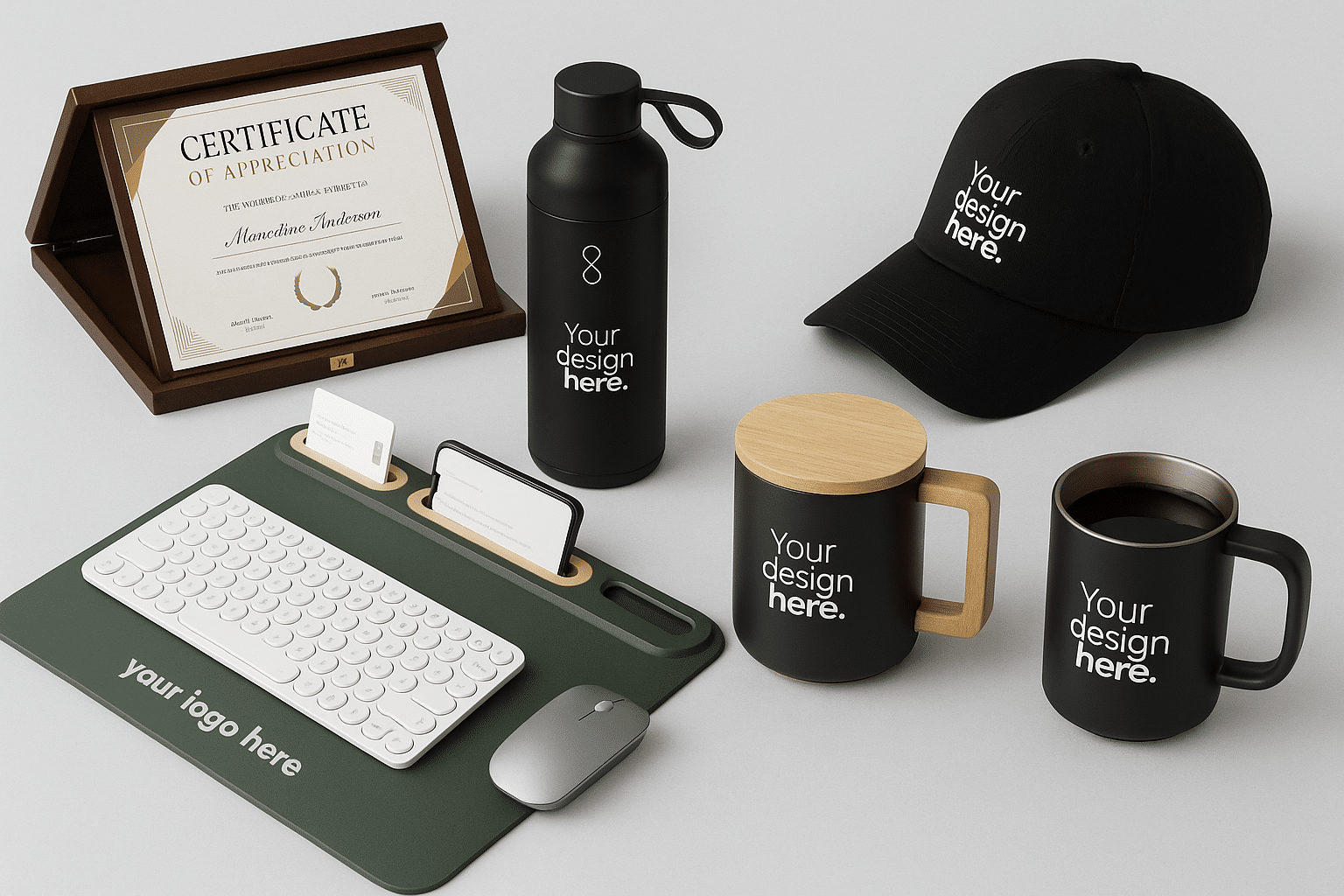 Design in real time, play with mockups, change colours, and preview everything instantly. You can test multiple concepts and finalise the perfect gift without going back and forth with designers.