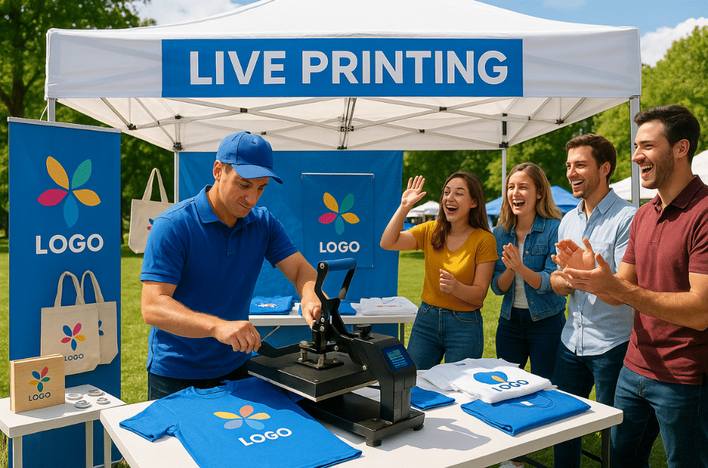 Transform giveaways into experiences — guests watch your merch printed live, making your brand unforgettable.