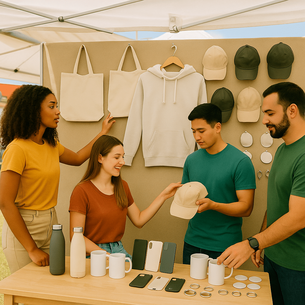 Custom merch created, packed, and in your hands instantly — perfect for events & giveaways.